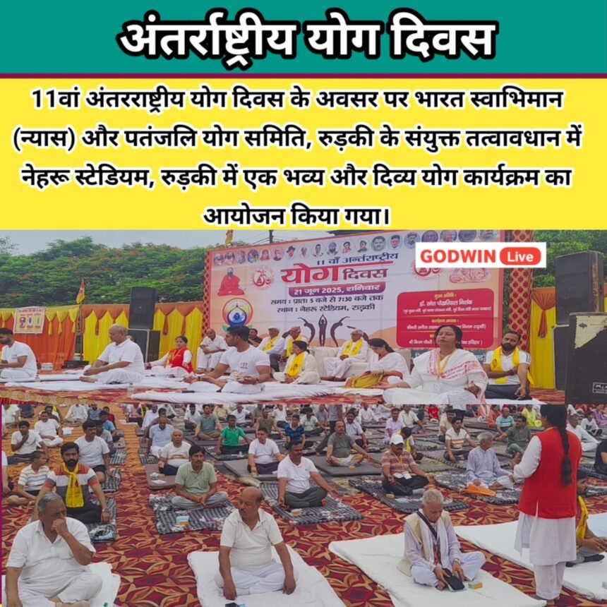 11वां अंतरराष्ट्रीय योग दिवस के अवसर पर भारत स्वाभिमान (न्यास) और पतंजलि योग समिति, रुड़की के संयुक्त तत्वावधान में नेहरू स्टेडियम, रुड़की में एक भव्य और दिव्य योग कार्यक्रम का आयोजन किया गया।
