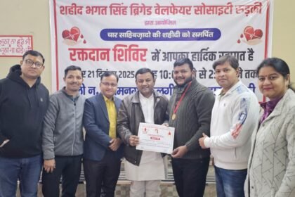 शहीद भगत सिंह ब्रिगेड वेलफेयर सोसाइटी ने किया रक्तदान शिविर का आयोजन, रक्तवीरों को किया गया सम्मान