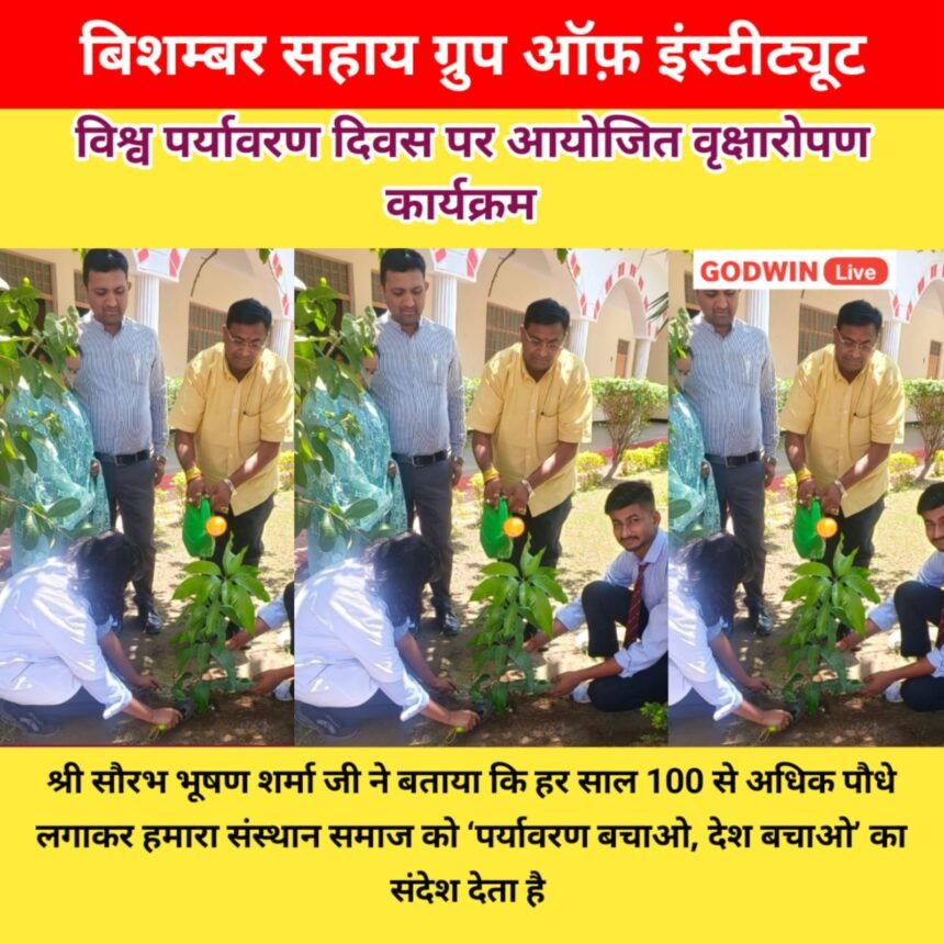 बिशम्बर सहायग्रु प ऑफ इंस्टीट्यूट में विश्व पर्यावरण दिवस पर वृक्षारोपण अभियान