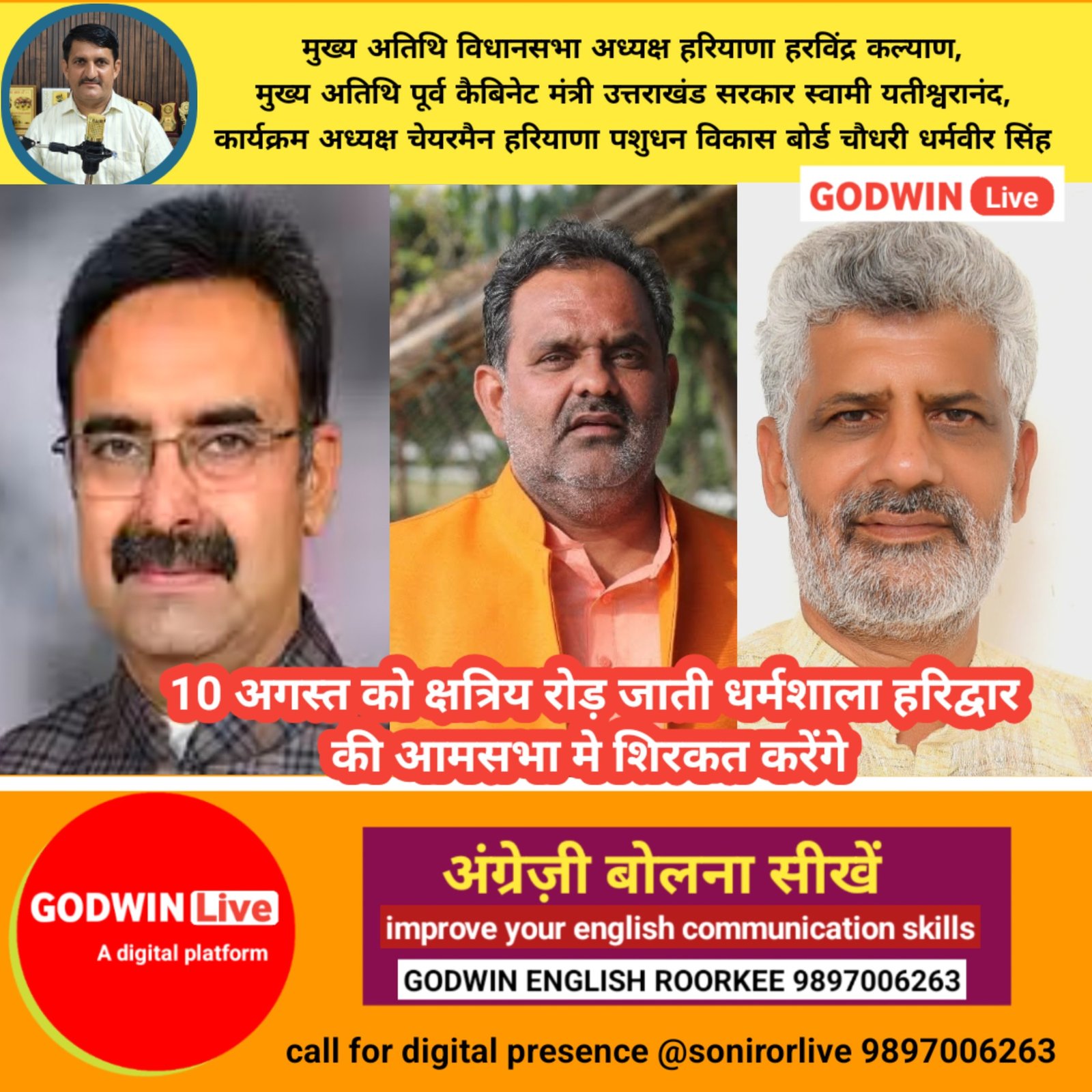 हरियाणा विधानसभा अध्यक्ष हरविंद्र कल्याण 10 अगस्त को करेंगे रोड समाज की…